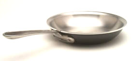 All Clad LTD Frypans - An effective fusion of an anodized aluminum exterior and a stainless steel interior cooking surface. Dark, hard anodized aluminum exterior layer that won't scratch, peel or chip. Pure aluminum core that not only covers the bottom of the pan but also extends up the sides. This allows for great heat conductivity as well as an even heat distribution so you won't have "hot spots" when cooking. Stainless steel interior layer/cooking surface. Long, polished stainless, stay cool handles. The handles on your All-Clad are secured with sturdy, non-corrosive rivets. Polished stainless steel lids that fit even with the pan's edges to seal in the flavors. Hand washing is recommend when cleaning your All-Clad LTD. Dishwasher use will deteriorate the exterior beauty of your pan. 3108 - 8" Frypan 3110 - 10" Frypan 3112 - 12" Frypan Choose size below. Product Code: ACLTDFRY